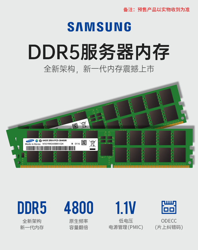 三星16G DDR5 4800 RECC M321R2GA3BB0-CQK 服務(wù)器內(nèi)存條