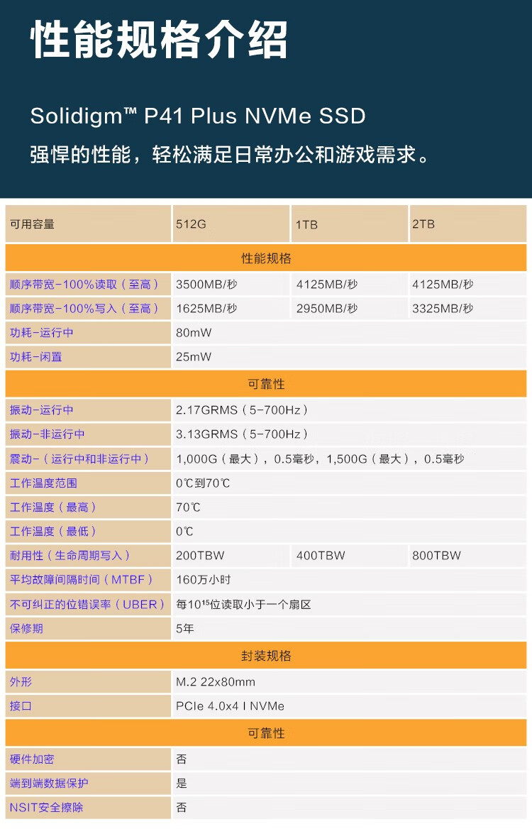 SSDPFKNU010TZX1 Solidigm/Intel P41 PLUS 1T M.2 NVMe固態硬盤 返回