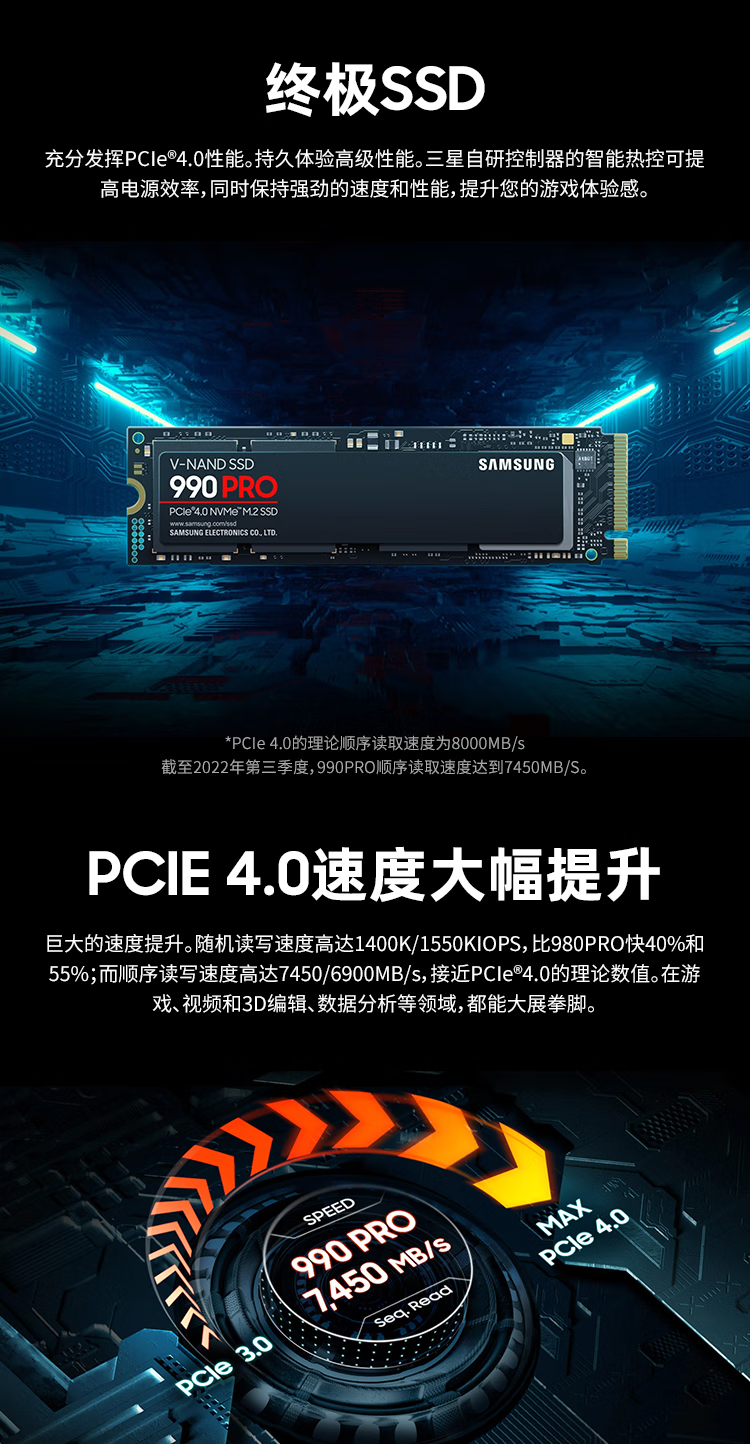 MZ-V9P1T0BW三星990 PRO 1T M.2 NVMe PCIe4 固態(tài)硬盤