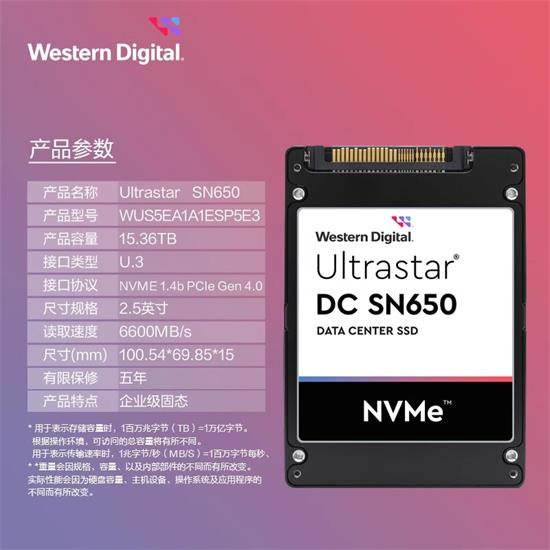 WUS5EA1A1ESP5E3西數SN650 15.36T U.3 NVMe企業級SSD